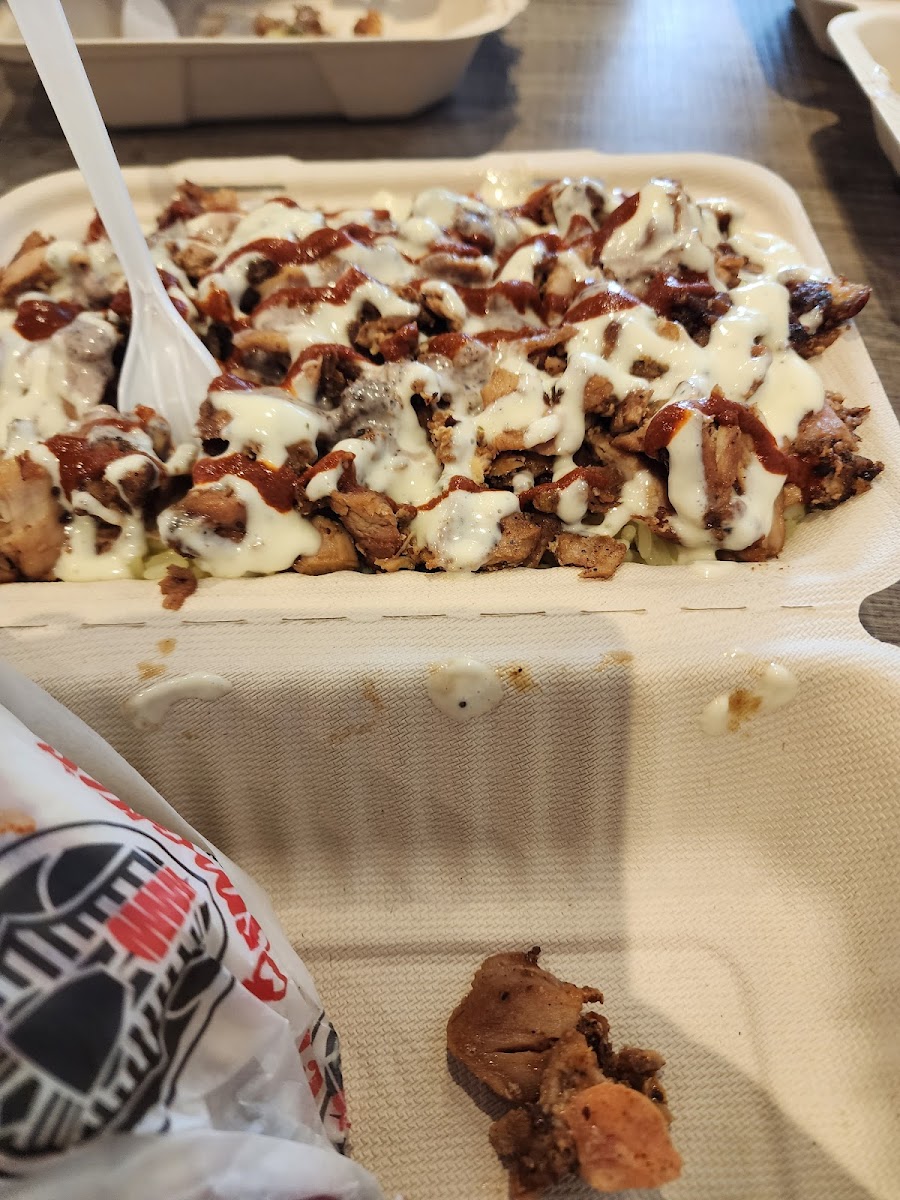 I went there on Friday evening there was a girl she made me a half nd half chicken box it was awesome like everything was so perfect. Really recommend this location.